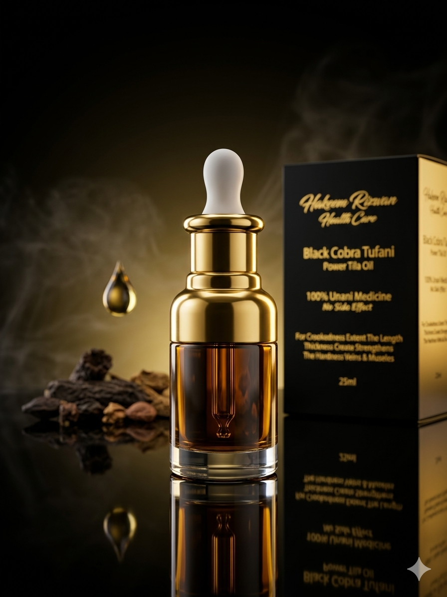 Black Cobra Tufani Power Tila Oil is a premium-quality Unani herbal formulation crafted to support male vitality and physical strength. This oil is carefully prepared using traditional herbal ingredients known for their effectiveness in improving blood circulation and muscle tone.